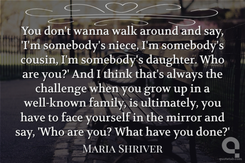 You don't wanna walk around and say, 'I'm somebody's niece, I'm somebody's cousin, I'm somebody's daughter. Who are you?' And I think that's always the challenge when you grow up in a well-known family, is ultimately, you have to face yourself in the mirror and say, 'Who are you? What have you done?'