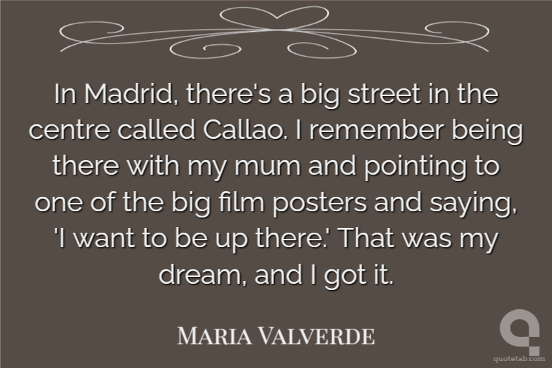 In Madrid, there's a big street in the centre called Callao. I remember being there with my mum and pointing to one of the big film posters and saying, 'I want to be up there.' That was my dream, and I got it.