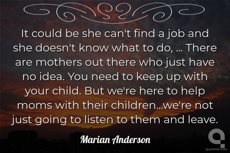 It could be she can't find a job and she doesn't know what to do, ... There are mothers out there who just have no idea. You need to keep up with your child. But we're here to help moms with their children...we're not just going to listen to them and leave.