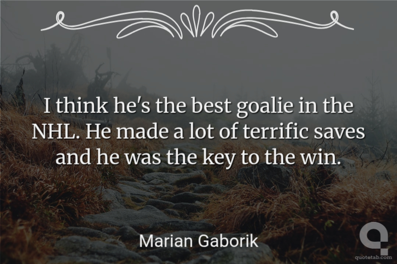 I think he's the best goalie in the NHL. He made a lot of terrific saves and he was the key to the win.