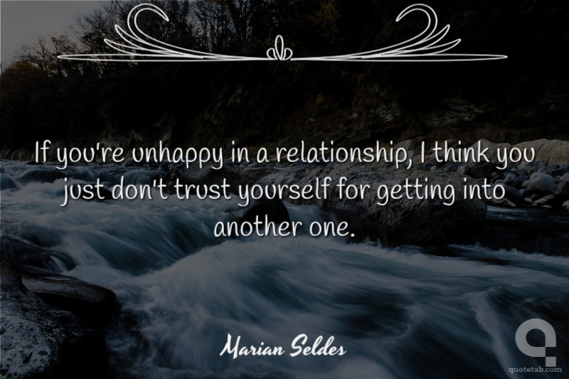 If you're unhappy in a relationship, I think you just don't trust yourself for getting into another one.