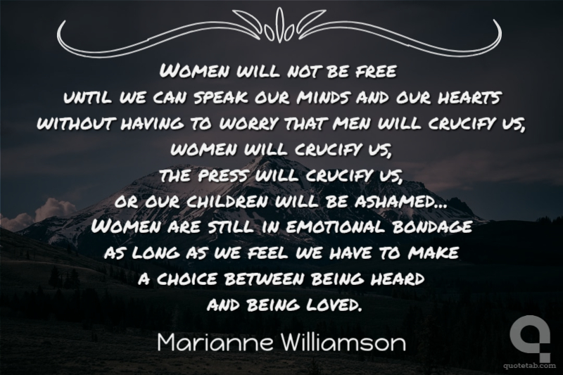 Women will not be free until we can speak our minds and our hearts without having to worry that men will crucify us, women will crucify us, the press will crucify us, or our children will be ashamed... Women are still in emotional bondage as long as we feel we have to make a choice between being heard and being loved.