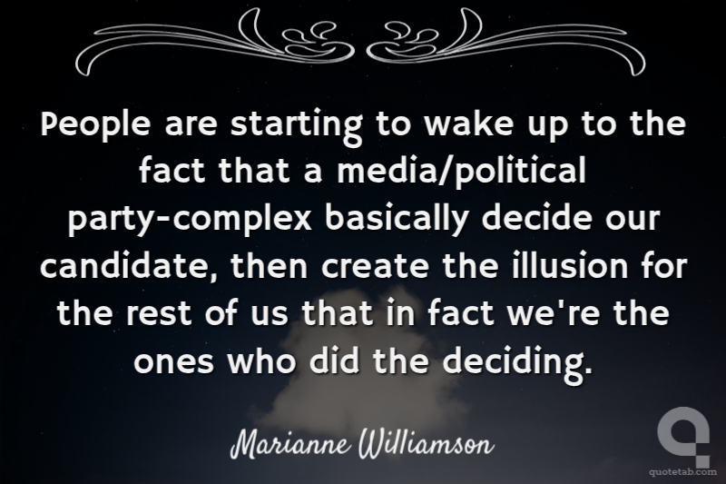People are starting to wake up to the fact that a media/political party-complex basically decide our candidate, then create the illusion for the rest of us that in fact we're the ones who did the deciding.