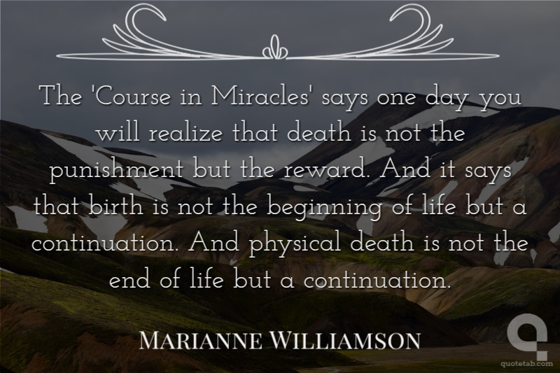The 'Course in Miracles' says one day you will realize that death is not the punishment but the reward. And it says that birth is not the beginning of life but a continuation. And physical death is not the end of life but a continuation.