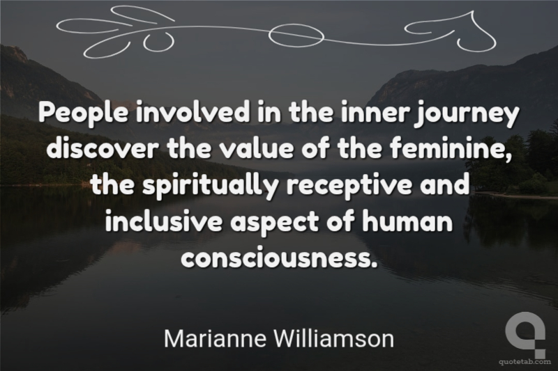 People involved in the inner journey discover the value of the feminine, the spiritually receptive and inclusive aspect of human consciousness.