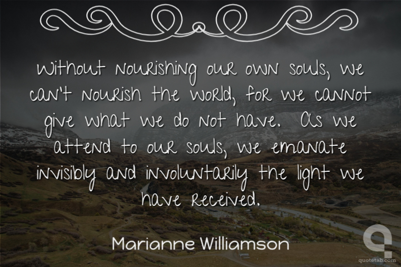 Without nourishing our own souls, we can't nourish the world, for we cannot give what we do not have. As we attend to our souls, we emanate invisibly and involuntarily the light we have received.