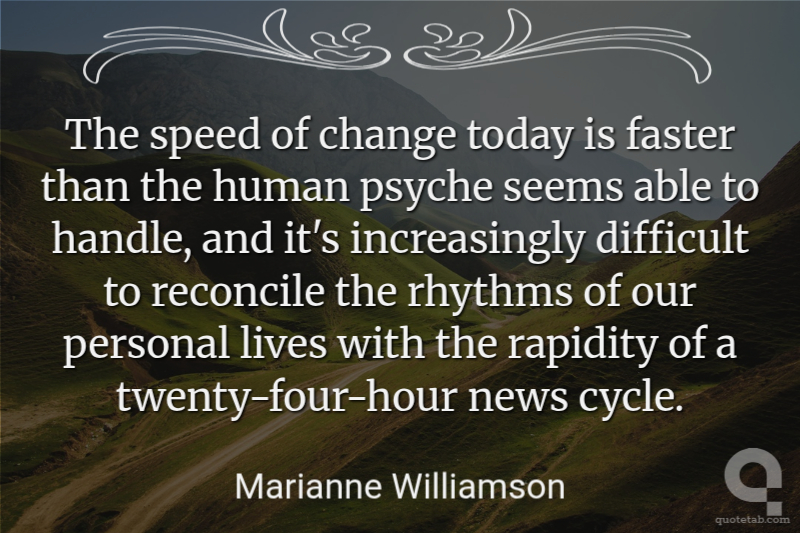 The speed of change today is faster than the human psyche seems able to handle, and it's increasingly difficult to reconcile the rhythms of our personal lives with the rapidity of a twenty-four-hour news cycle.