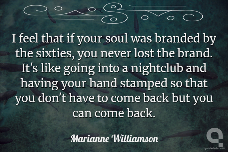 I feel that if your soul was branded by the sixties, you never lost the brand. It's like going into a nightclub and having your hand stamped so that you don't have to come back but you can come back.