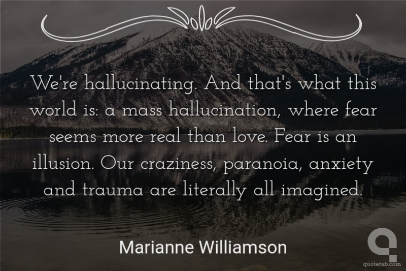 We're hallucinating. And that's what this world is: a mass hallucination, where fear seems more real than love. Fear is an illusion. Our craziness, paranoia, anxiety and trauma are literally all imagined.
