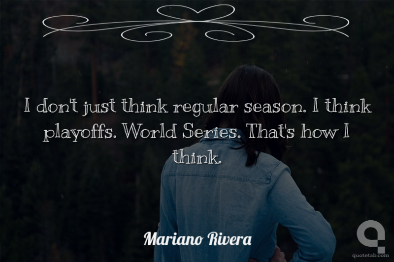 I don't just think regular season. I think playoffs. World Series. That's how I think.