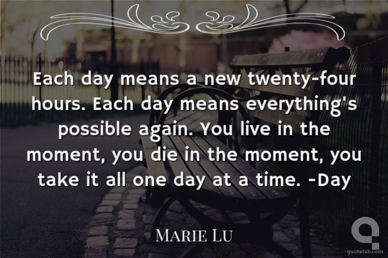 Each day means a new twenty-four hours. Each day means everything's possible again. You live in the moment, you die in the moment, you take it all one day at a time. -Day