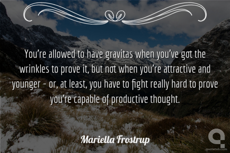 You're allowed to have gravitas when you've got the wrinkles to prove it, but not when you're attractive and younger - or, at least, you have to fight really hard to prove you're capable of productive thought.