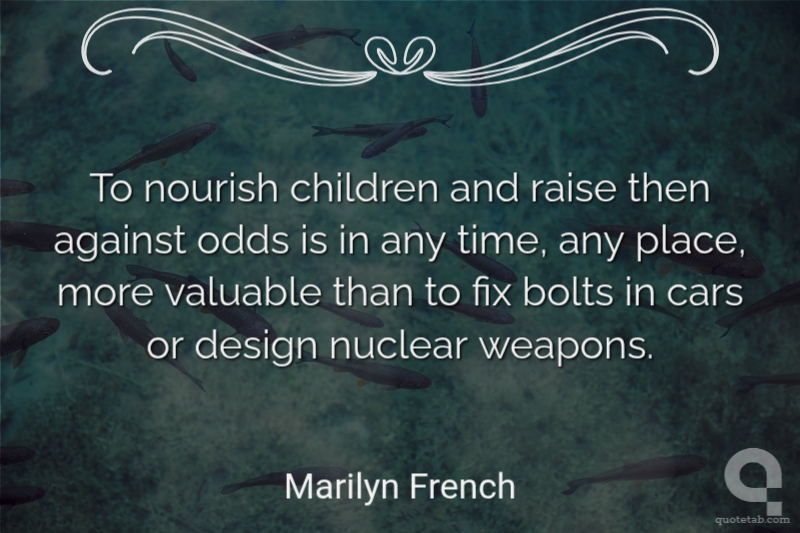 To nourish children and raise them against odds is in any time, any place, is more valuable than to fix bolts in cars or design nuclear weapons.