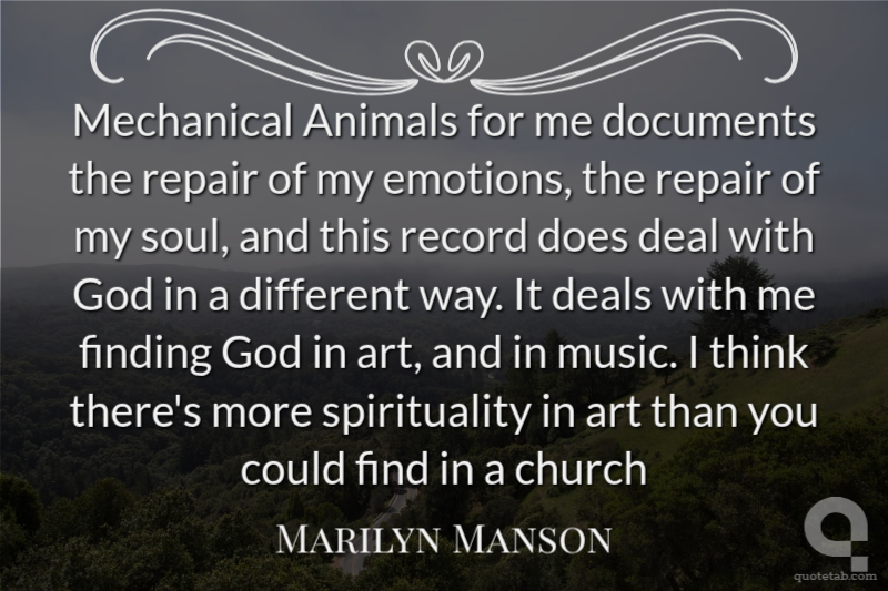 Mechanical Animals for me documents the repair of my emotions, the repair of my soul, and this record does deal with God in a different way. It deals with me finding God in art, and in music. I think there's more spirituality in art than you could find in a church