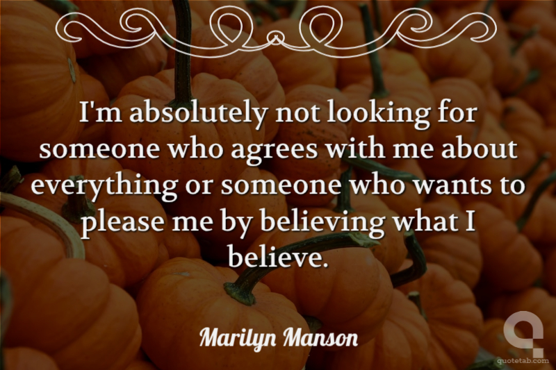 I'm absolutely not looking for someone who agrees with me about everything or someone who wants to please me by believing what I believe.