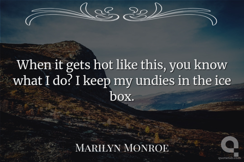 When it gets hot like this, you know what I do? I keep my undies in the ice box.