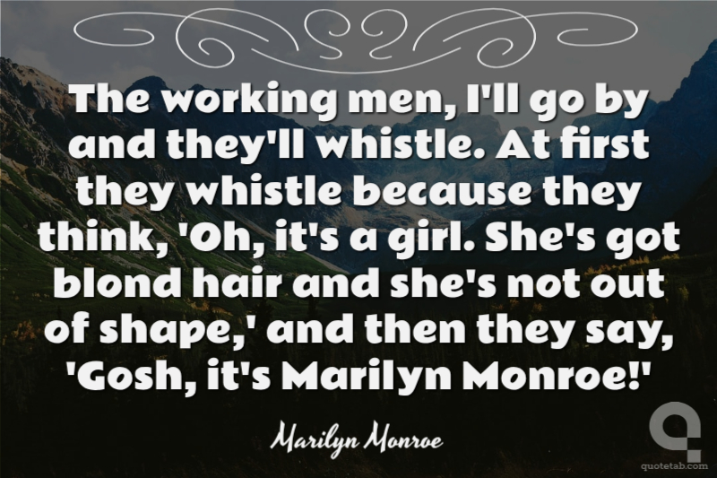 The working men, I'll go by and they'll whistle. At first they whistle because they think, 'Oh, it's a girl. She's got blond hair and she's not out of shape,' and then they say, 'Gosh, it's Marilyn Monroe!'