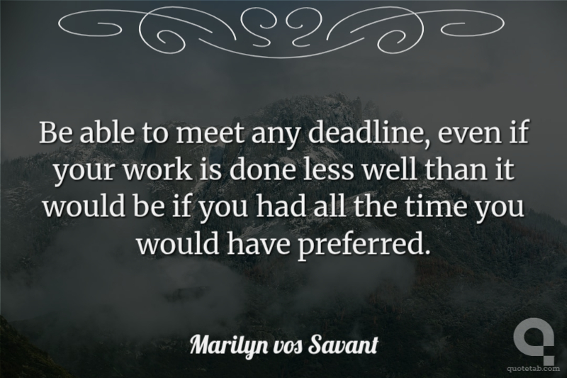 Be able to meet any deadline, even if your work is done less well than it would be if you had all the time you would have preferred.