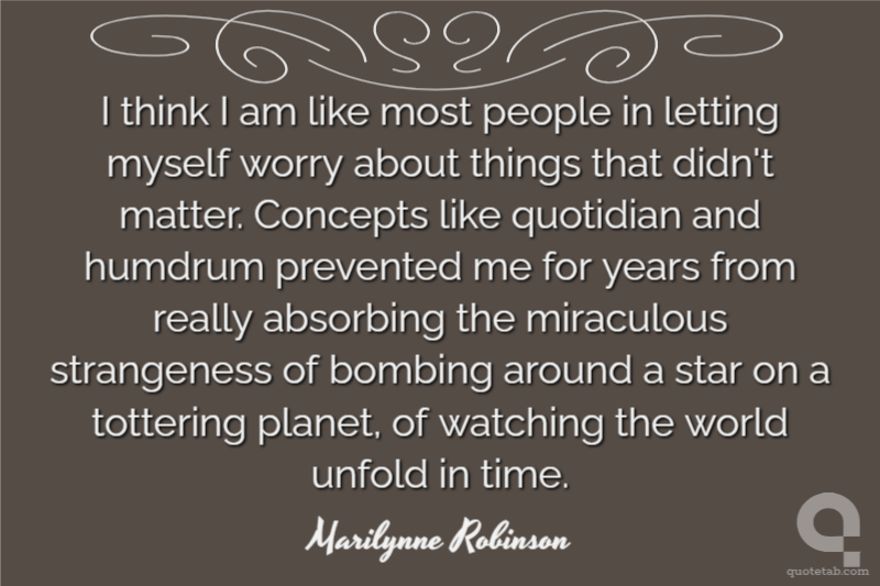 I think I am like most people in letting myself worry about things that didn't matter. Concepts like quotidian and humdrum prevented me for years from really absorbing the miraculous strangeness of bombing around a star on a tottering planet, of watching the world unfold in time.