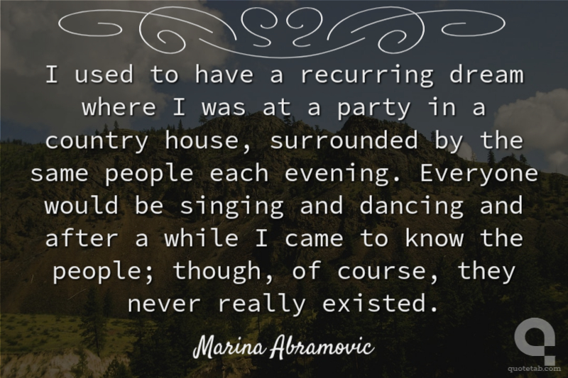 I used to have a recurring dream where I was at a party in a country house, surrounded by the same people each evening. Everyone would be singing and dancing and after a while I came to know the people; though, of course, they never really existed.
