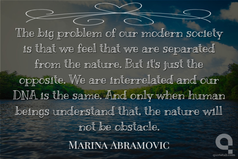 The big problem of our modern society is that we feel that we are separated from the nature. But it's just the opposite. We are interrelated and our DNA is the same. And only when human beings understand that, the nature will not be obstacle.