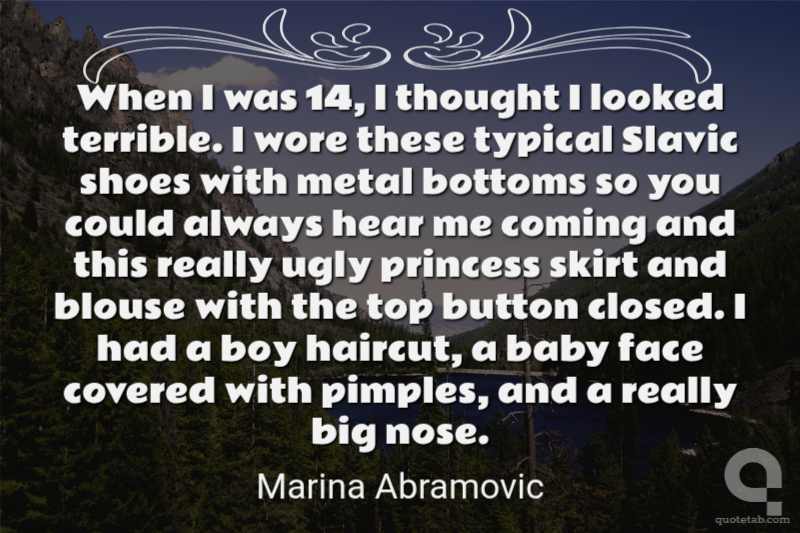 When I was 14, I thought I looked terrible. I wore these typical Slavic shoes with metal bottoms so you could always hear me coming and this really ugly princess skirt and blouse with the top button closed. I had a boy haircut, a baby face covered with pimples, and a really big nose.