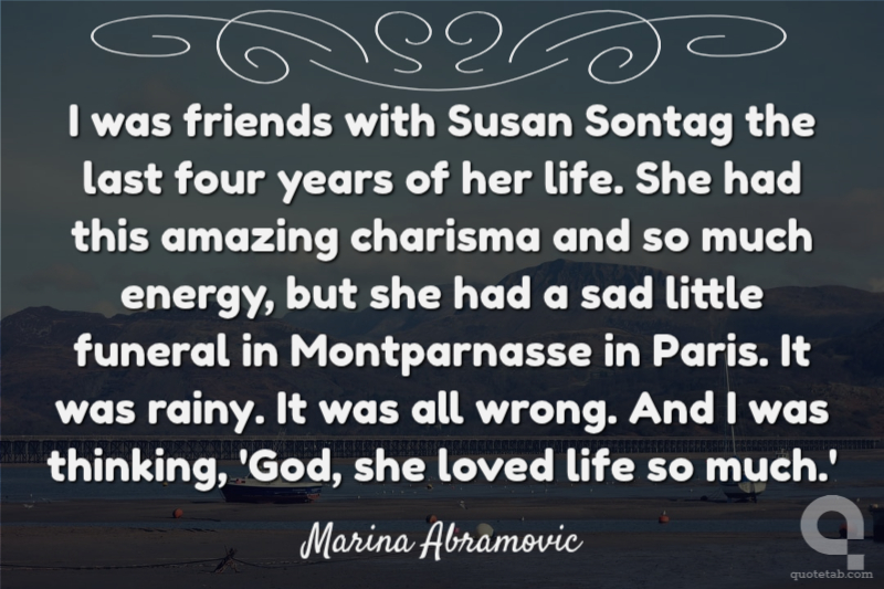 I was friends with Susan Sontag the last four years of her life. She had this amazing charisma and so much energy, but she had a sad little funeral in Montparnasse in Paris. It was rainy. It was all wrong. And I was thinking, 'God, she loved life so much.'
