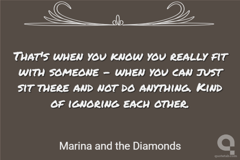That's when you know you really fit with someone - when you can just sit there and not do anything. Kind of ignoring each other.
