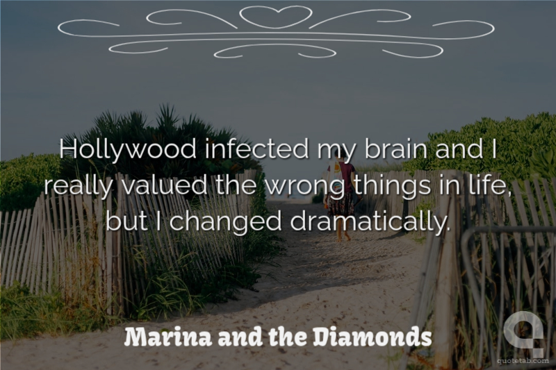 Hollywood infected my brain and I really valued the wrong things in life, but I changed dramatically.