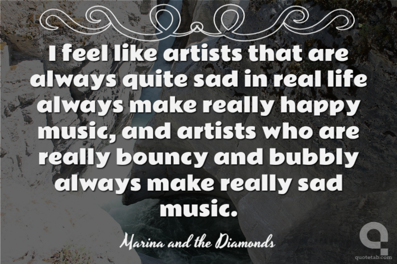 I feel like artists that are always quite sad in real life always make really happy music, and artists who are really bouncy and bubbly always make really sad music.