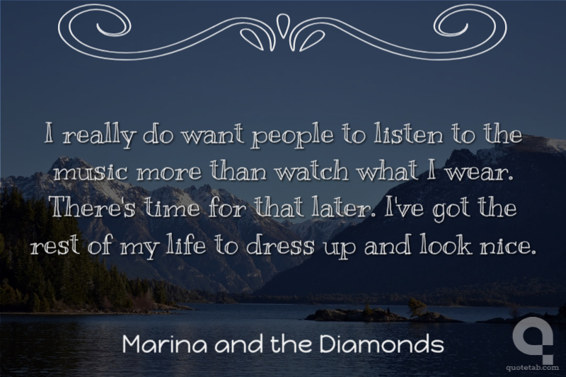 I really do want people to listen to the music more than watch what I wear. There's time for that later. I've got the rest of my life to dress up and look nice.