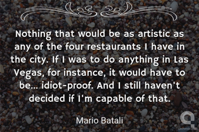 Nothing that would be as artistic as any of the four restaurants I have in the city. If I was to do anything in Las Vegas, for instance, it would have to be... idiot-proof. And I still haven't decided if I'm capable of that.