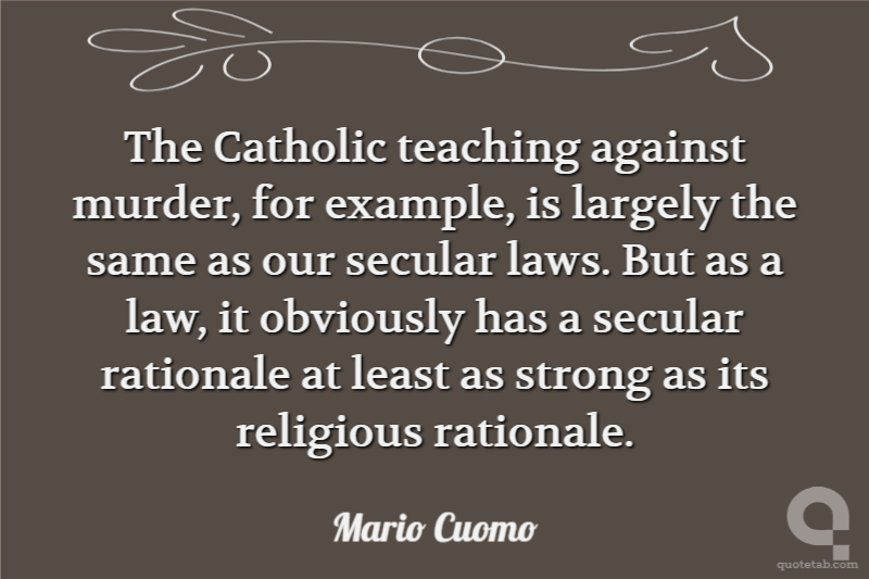 The Catholic teaching against murder, for example, is largely the same as our secular laws. But as a law, it obviously has a secular rationale at least as strong as its religious rationale.