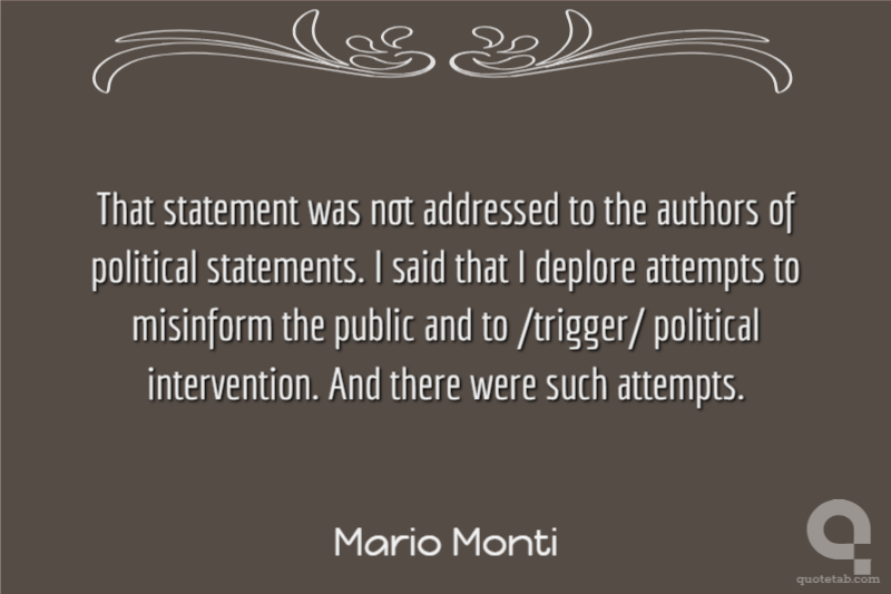 That statement was not addressed to the authors of political statements. I said that I deplore attempts to misinform the public and to /trigger/ political intervention. And there were such attempts.
