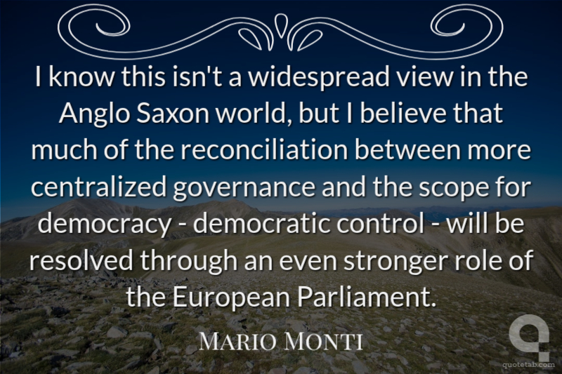 I know this isn't a widespread view in the Anglo Saxon world, but I believe that much of the reconciliation between more centralized governance and the scope for democracy - democratic control - will be resolved through an even stronger role of the European Parliament.