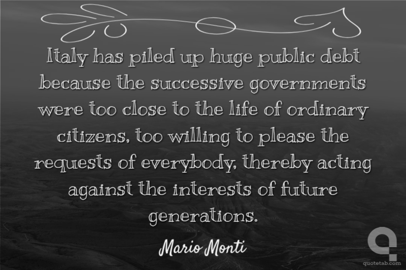 Italy has piled up huge public debt because the successive governments were too close to the life of ordinary citizens, too willing to please the requests of everybody, thereby acting against the interests of future generations.