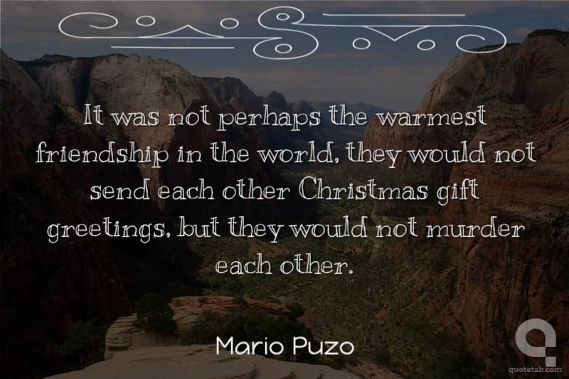 It was not perhaps the warmest friendship in the world, they would not send each other Christmas gift greetings, but they would not murder each other.