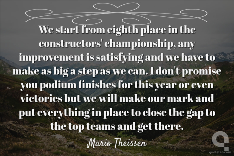 We start from eighth place in the constructors' championship, any improvement is satisfying and we have to make as big a step as we can. I don't promise you podium finishes for this year or even victories but we will make our mark and put everything in place to close the gap to the top teams and get there.