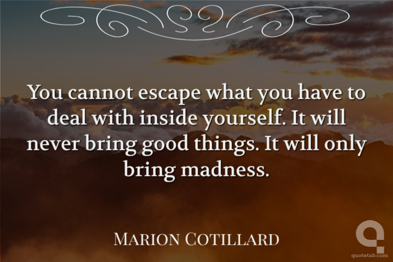 You cannot escape what you have to deal with inside yourself. It will never bring good things. It will only bring madness.