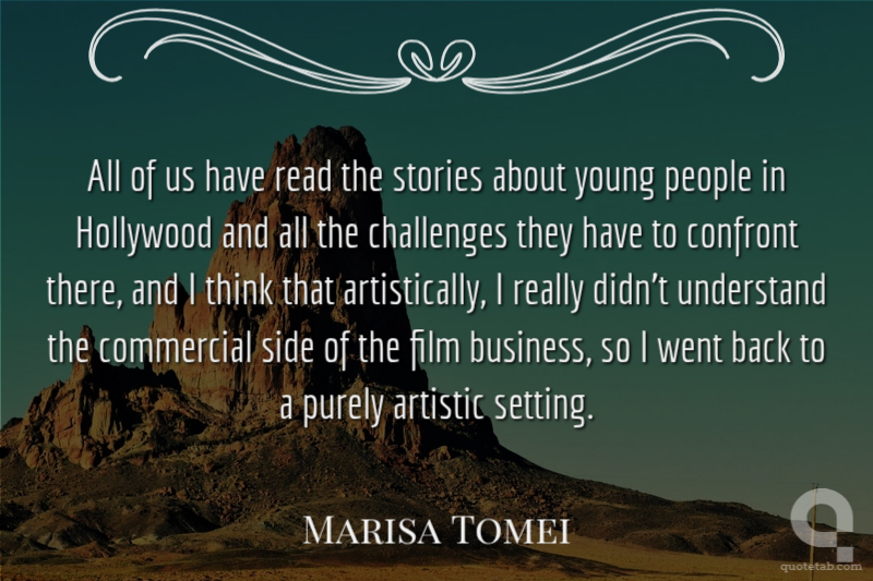 All of us have read the stories about young people in Hollywood and all the challenges they have to confront there, and I think that artistically, I really didn't understand the commercial side of the film business, so I went back to a purely artistic setting.