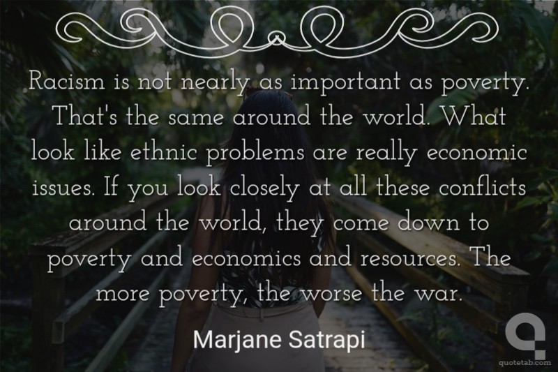 Racism is not nearly as important as poverty. That's the same around the world. What look like ethnic problems are really economic issues. If you look closely at all these conflicts around the world, they come down to poverty and economics and resources. The more poverty, the worse the war.