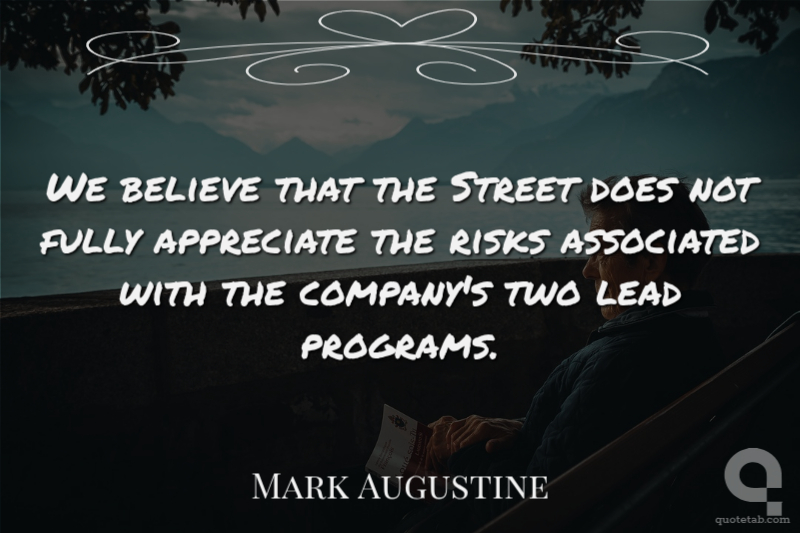 We believe that the Street does not fully appreciate the risks associated with the company's two lead programs.