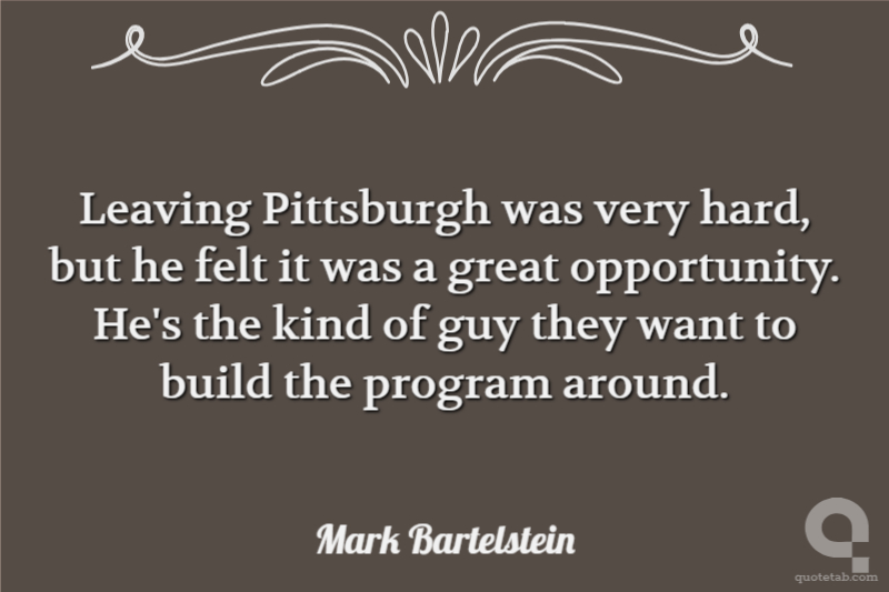 Leaving Pittsburgh was very hard, but he felt it was a great opportunity. He's the kind of guy they want to build the program around.