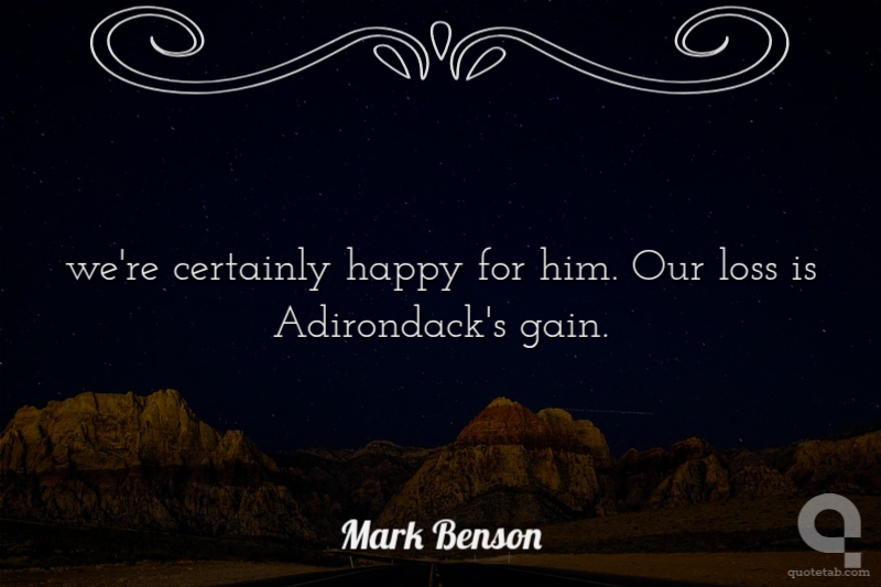 we're certainly happy for him. Our loss is Adirondack's gain.