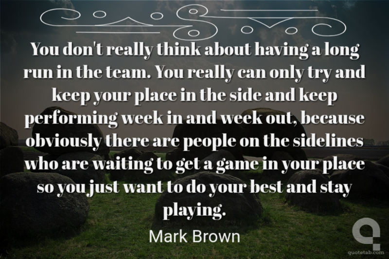 You don't really think about having a long run in the team. You really can only try and keep your place in the side and keep performing week in and week out, because obviously there are people on the sidelines who are waiting to get a game in your place so you just want to do your best and stay playing.