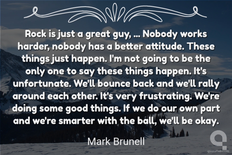 Rock is just a great guy, ... Nobody works harder, nobody has a better attitude. These things just happen. I'm not going to be the only one to say these things happen. It's unfortunate. We'll bounce back and we'll rally around each other. It's very frustrating. We're doing some good things. If we do our own part and we're smarter with the ball, we'll be okay.