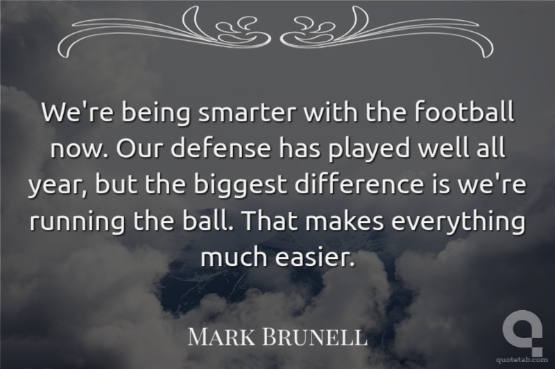 We're being smarter with the football now. Our defense has played well all year, but the biggest difference is we're running the ball. That makes everything much easier.