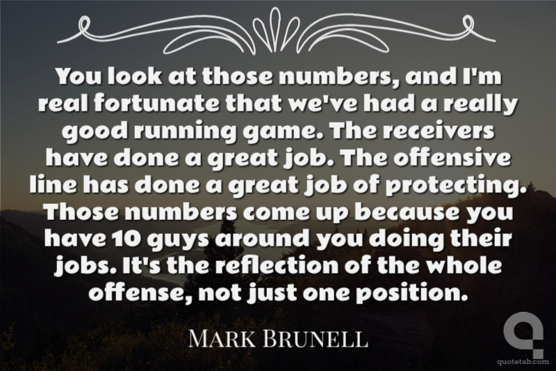 You look at those numbers, and I'm real fortunate that we've had a really good running game. The receivers have done a great job. The offensive line has done a great job of protecting. Those numbers come up because you have 10 guys around you doing their jobs. It's the reflection of the whole offense, not just one position.