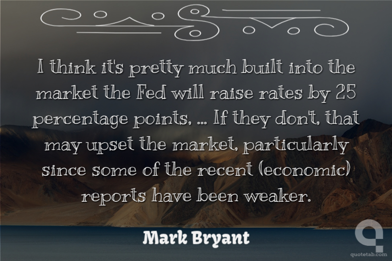 I think it's pretty much built into the market the Fed will raise rates by 25 percentage points, ... If they don't, that may upset the market, particularly since some of the recent (economic) reports have been weaker.