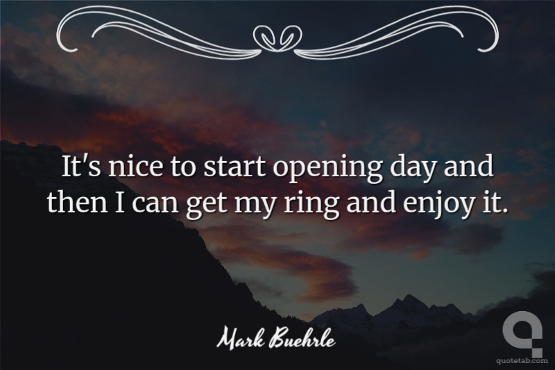 It's nice to start opening day and then I can get my ring and enjoy it.